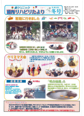 通所リハビリたより 令和8年1月 冬号 令和7年10月 秋号 令和7年7月 夏号 令和7年4月 春号 令和7年1月 冬号 令和6年10月 秋号 令和6年7月 夏号 令和5年11月 冬号 令和5年9月 秋号 令和5年5月 春号 令和5年2月 冬号 令和4年8月 夏号 令和4年4月 春号 令和2年12月 秋号 令和2年7月 夏号 令和2年2月 冬号